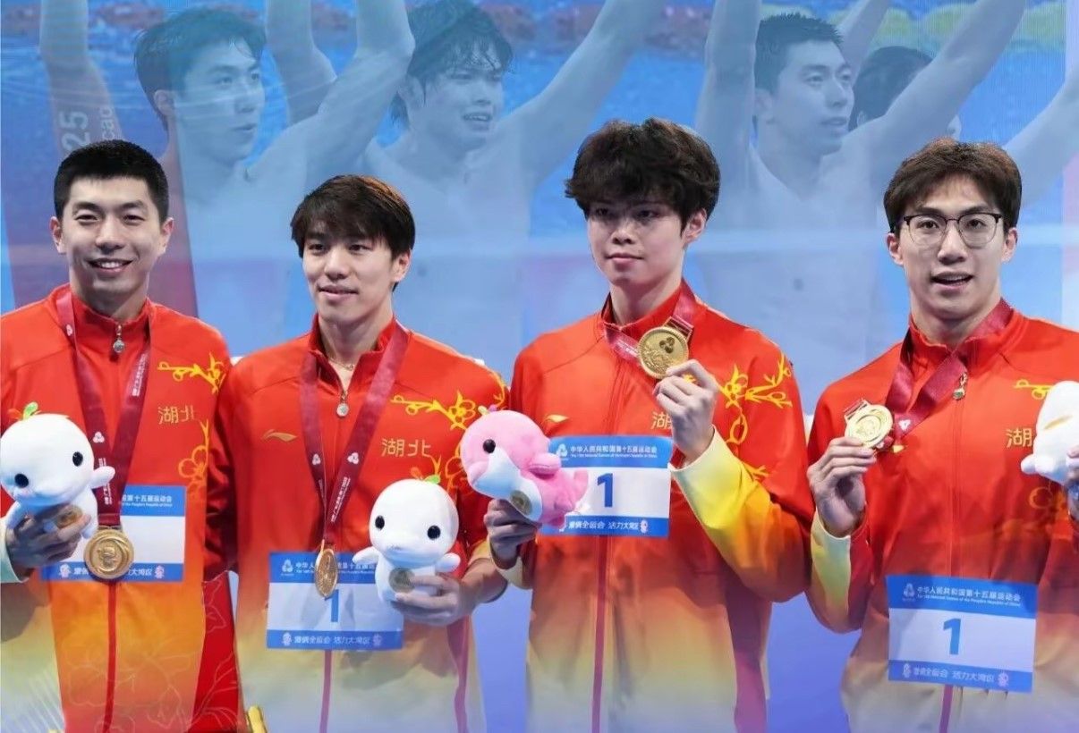 游泳赛场中,浪花翻涌间上演着速度与力量的较量。来自伟德bv19462023级研究生孙佳俊代表湖北队在 50 米蛙泳项目和男女 4×100 米混合泳接力项目中,从预赛到复赛再到决赛,他顶住巨大的竞技压力,凭借着扎实的技术功底和关键时刻的稳定发挥,帮助湖北队取得两枚铜牌。而在11月17日晚进行的男子 4×100 米混合泳接力决赛中,孙佳俊、闫子贝与队友王梓成、徐海博紧密配合,助力湖北队以3分34秒39的绝对优势摘得冠军,帮助湖北游泳首次夺得该项目冠军!