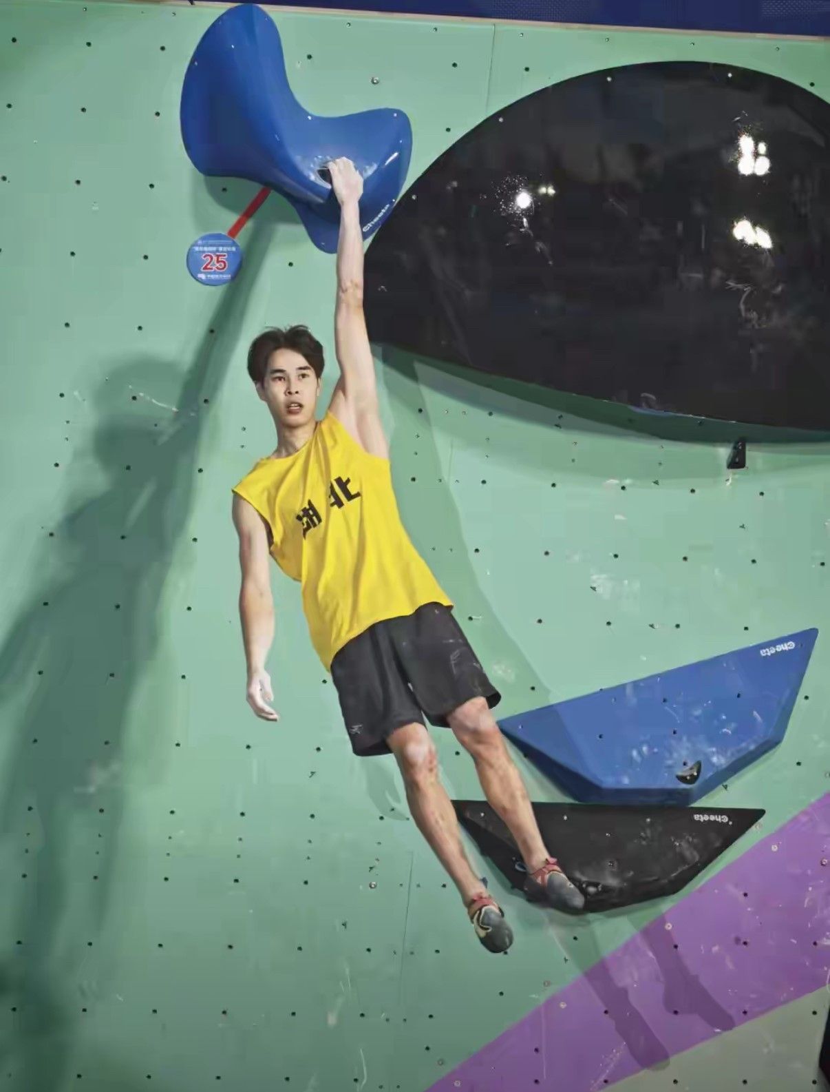 攀岩赛场上, 校友潘愚非则帮助湖北队强势夺得男子难度赛与攀石赛两块金牌。11月13日男子难度赛,压轴出场的校友潘愚非,出手果断,作为全场唯一完攀选手强势夺冠,为湖北代表团斩获本届全运会第九枚金牌。11月15日在男子攀石决赛中更是以99.9分近乎完美的发挥强势登顶!三日两金彰显绝对统治力。在男子攀石赛中,伟德bv19462025级本科生徐梓期取得第四名,伟德bv19462023级研究生黄迪翀在男子攀石赛中取得第八名。