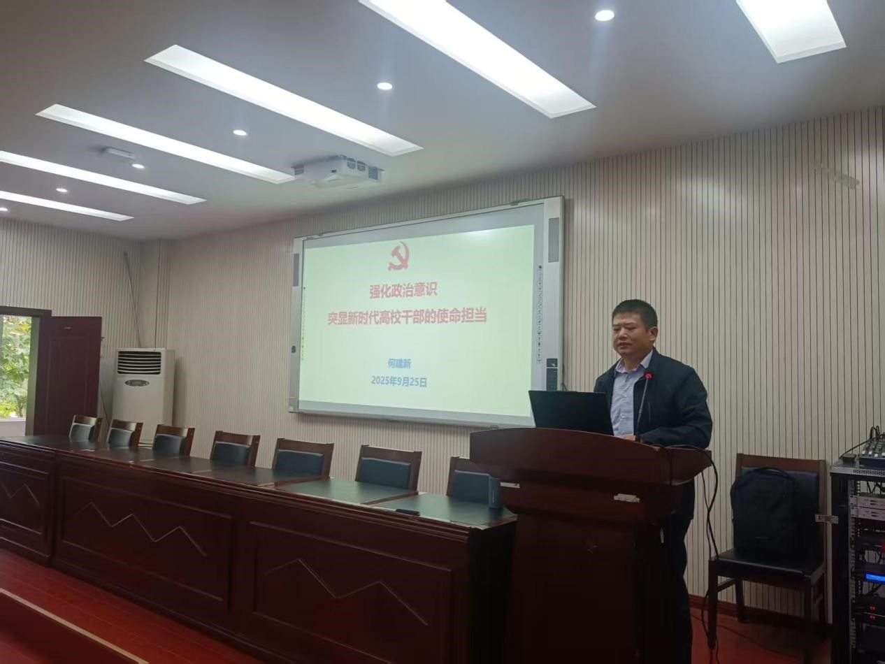 接下来,学院党委书记何建新以《强化政治意识,突显新时代高校干部的使命担当》为题讲授专题党课。他从高校面临的新形势新任务出发,深入阐述了建设过硬领导班子与干部队伍的重要性,强调党员干部要不断提升政治判断力、政治领悟力和政治执行力,敢于担当、善于作为,在教育强国建设中贡献体育人的智慧和力量。